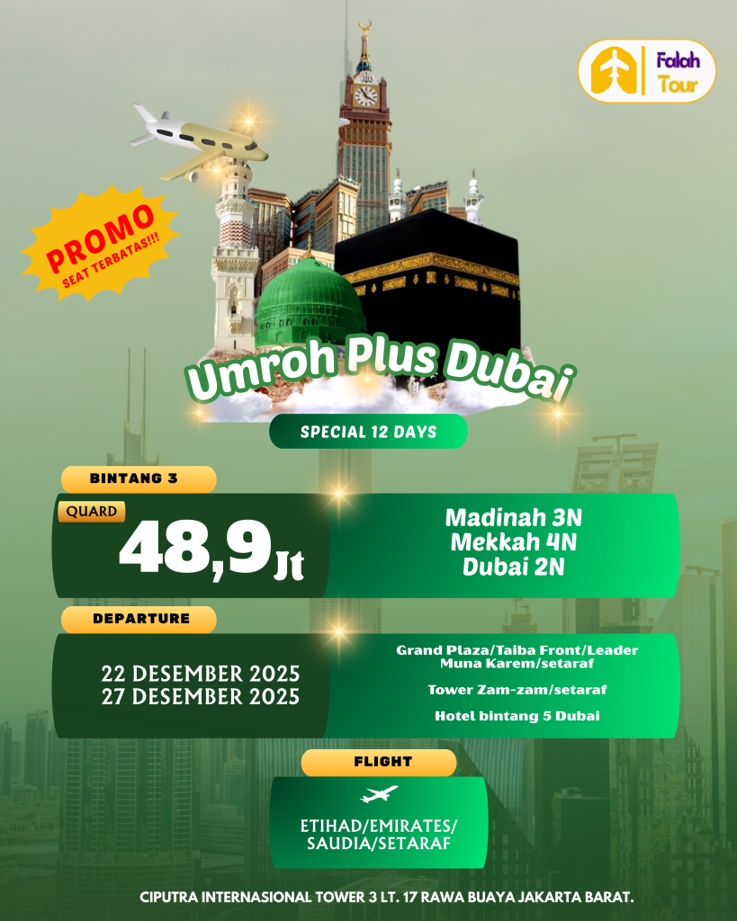 Perjalanan ibadah umroh merupakan salah satu impian setiap Muslim. Menunaikan ibadah di Tanah Suci memberi pengalaman spiritual yang mendalam dan membawa ketenangan batin. Namun, kini banyak jamaah yang memilih paket Umroh Plus Dubai —kombinasi antara ibadah suci dan wisata ke destinasi modern kelas dunia seperti Dubai & Abu Dhabi. Program ini tak hanya menyentuh sisi spiritual, tapi juga memperkaya wawasan budaya dan pengalaman liburan berkelas.