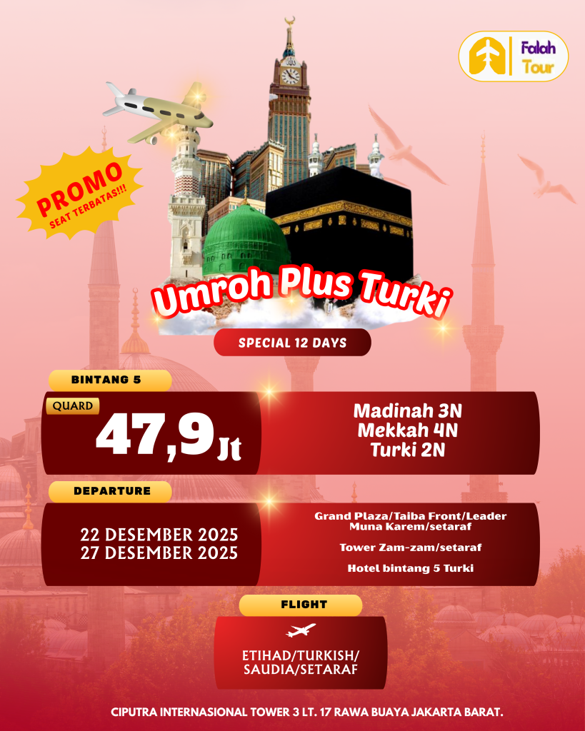 Umroh merupakan salah satu ibadah penting bagi umat Muslim yang ingin mengunjungi kota Mekah dan Madinah untuk melaksanakan serangkaian ritual ibadah kecil yang memiliki makna spiritual mendalam. Saat ini, banyak sekali paket perjalanan umroh dan wisata yang tidak hanya menawarkan pengalaman beribadah, tetapi juga dikombinasikan dengan wisata ke negara lain yang kaya akan sejarah dan budaya, salah satunya adalah Turki. Anda akan merasakan pengalaman rohani sekaligus wisata yang tak terlupakan dengan jamaah yang mengikuti perjalanan umroh plus turki ini.